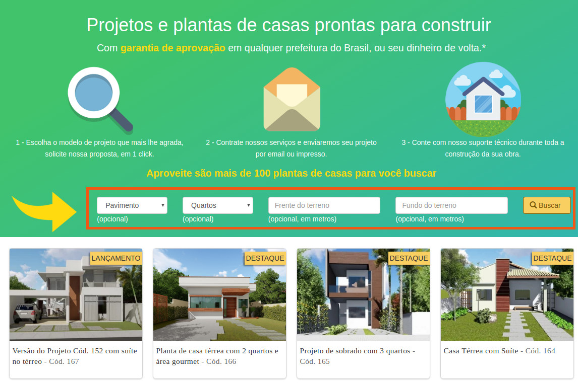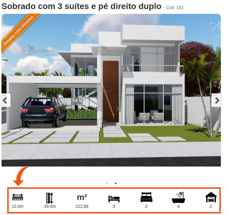 Passo 2: Como exemplo, escolhemos o projeto Sobrado com 3 suítes e pé direito duplo - Cód. 152.