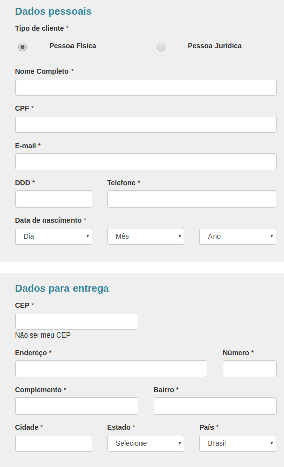 Aqui você preenche o formulário com seus dados (identificação, contato e endereço para entrega).