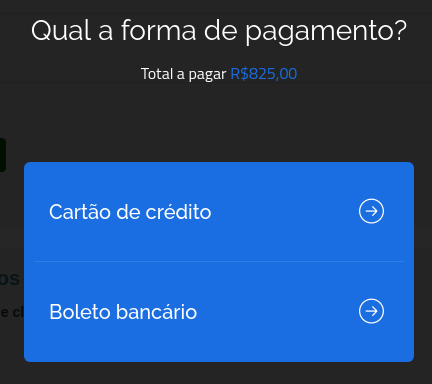 Para finalizar sua compra, você escolhe qual a sua forma de pagamento. Temos duas formas: